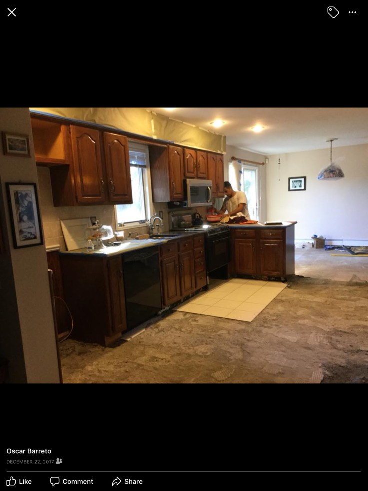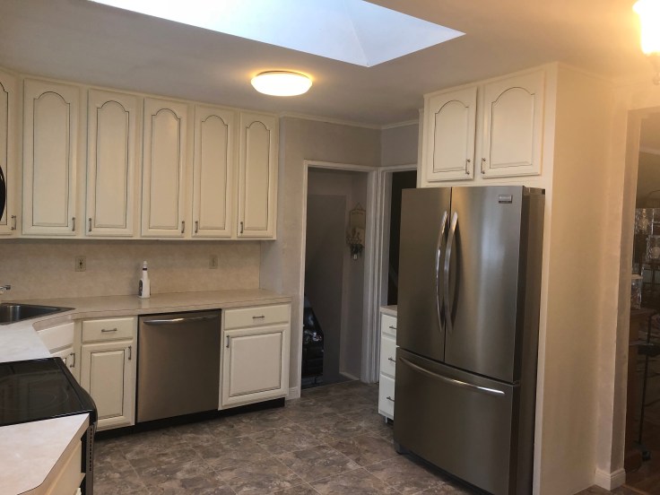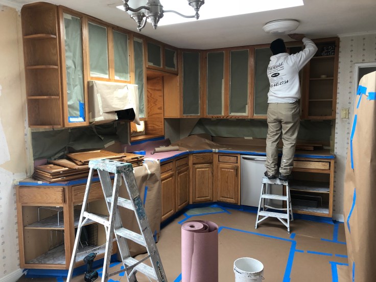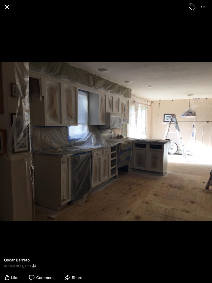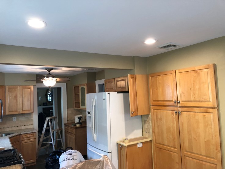 New Molding, Floors Installed & Refinished, kitchen Cabinets Restoration It’s Finish With Spray Paint & Glaze On Door Grooves Plus Walls Painted With Custom Colors