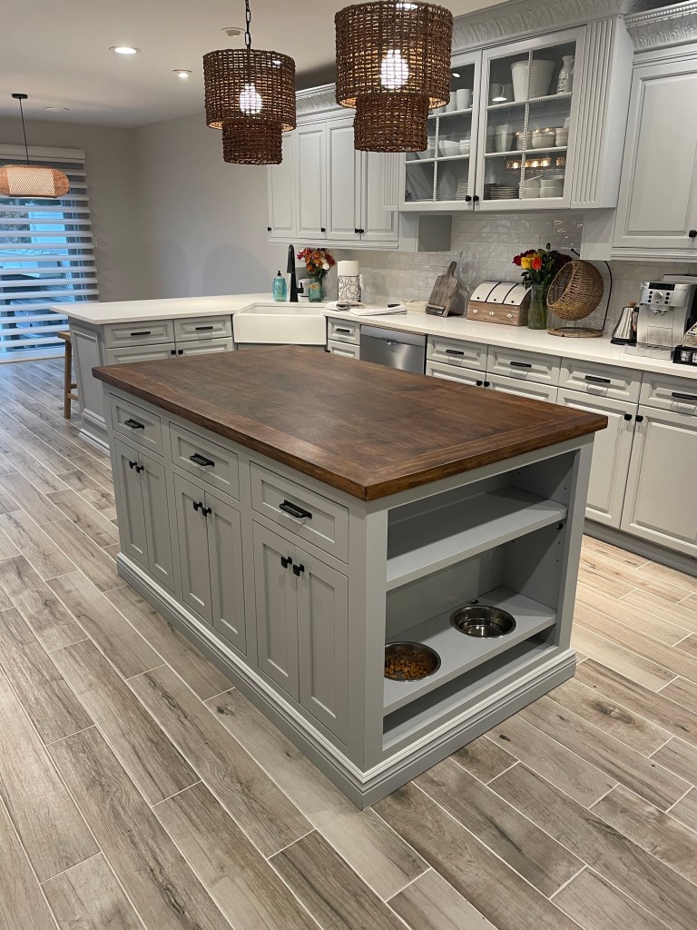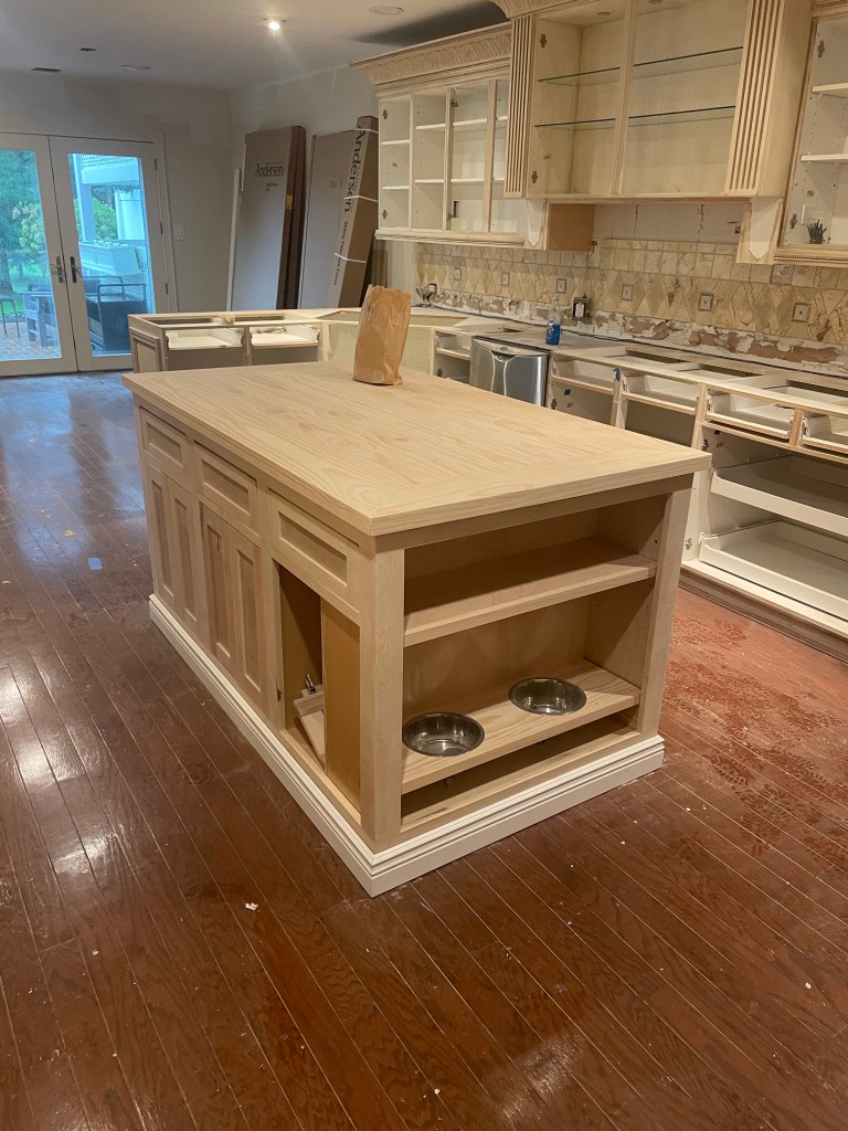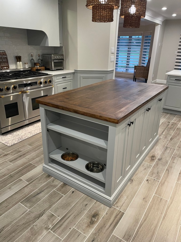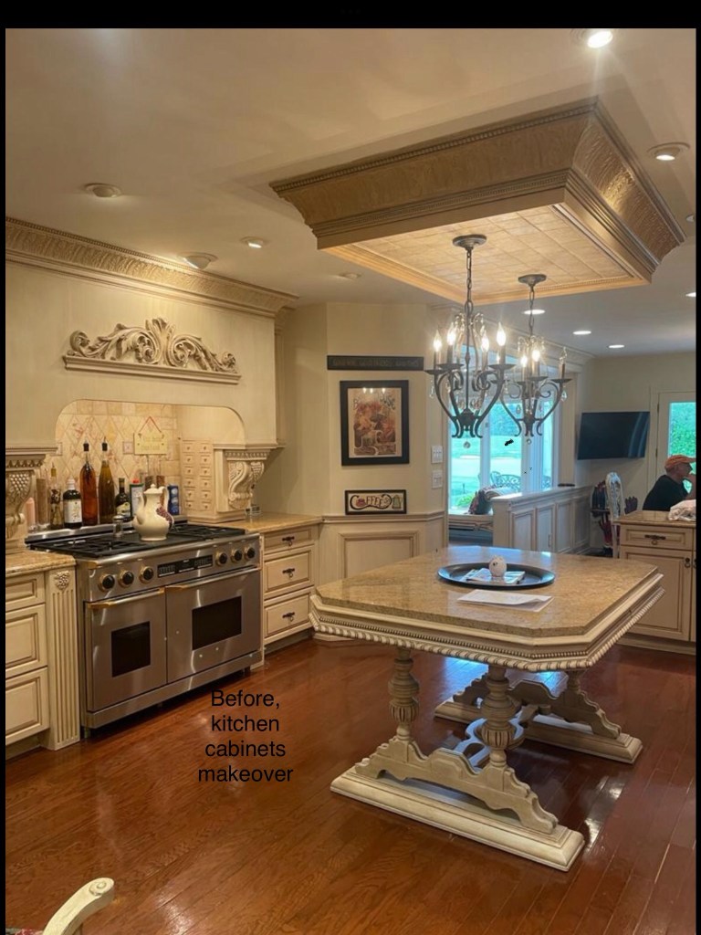 “We transformed this kitchen wall with a stunning before-and-after makeover featuring our custom cabinets. The renovation swapped out the old setup for sleek, light-colored wood cabinets with a custom finish, paired with dark granite countertops and polished hardware. The updated layout improved workflow and added modern elegance to the space, showcasing our craftsmanship in custom cabinetry and design. At Old World Construction Corp, we don’t just build cabinets – we also spray them in the exact color you want, ensuring a flawless finish that matches your style. The best part? We handle everything in-house, so you don’t have to deal with multiple contractors or worry about coordination. Let us bring your kitchen vision to life! 😊”