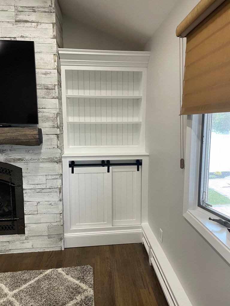 “Custom-built fireplace surround with barn door shelving unit.” Before & After built-in furniture and spray paint Compártelo: Share on X (Opens in new window) X Share on Facebook (Opens in new window) Facebook Like Loading... Related Comments are closed.